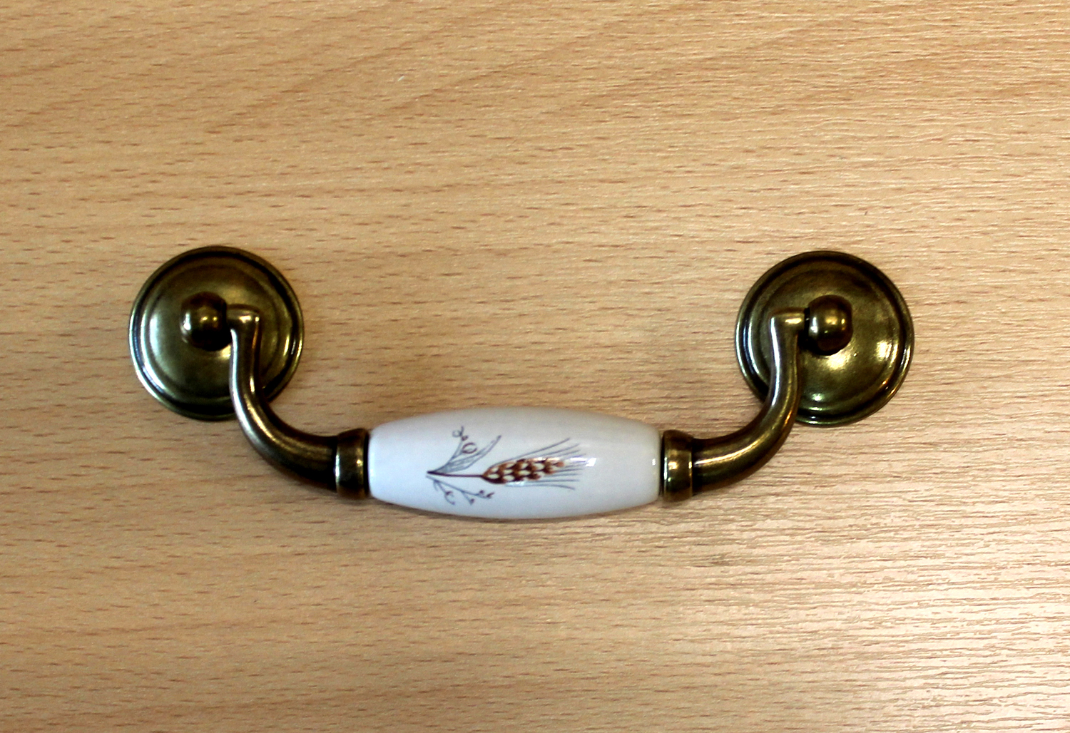 11129- úchyt visací 96mm staromosaz-porc./klásek
