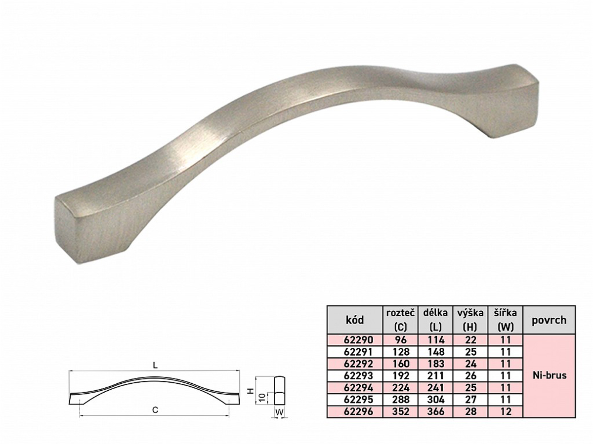 62295 úchytka KARAT rozteč 288mm nikl broušenýSkladem205,70 Kč/ ks170,00 Kč bez DPH