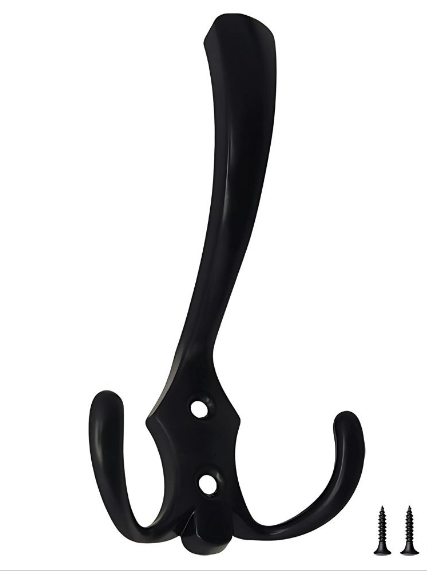 nástěnný háček pro předsíň, koupelnu, kuchyni i dílnu. Každý háček má tři úchyty pro oblečení, ručníky či tašky a díky odolné kovové konstrukci (lisovaná ocel) a montáži na 2 vruty nabízí stabilní a dlouhodobé řešení. Minimalistický matný černý design skvěle zapadne do moderních interiérů.